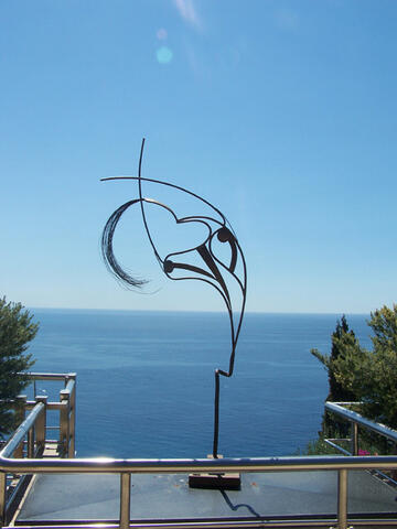 Sculpture offerte par la commune de Valdeblore au pianiste François René Duchable, en remerciement de ses concerts des lacs. Le concertiste avait immergé son piano dans le lac il y a 3 ans,pour marquer symboliquement la fin des concerts traditionnels. Une partie de ce piano est remonté du fonds des eaux du lac et symbolise la "renaissance" de l'artiste hors des cadres convenus.